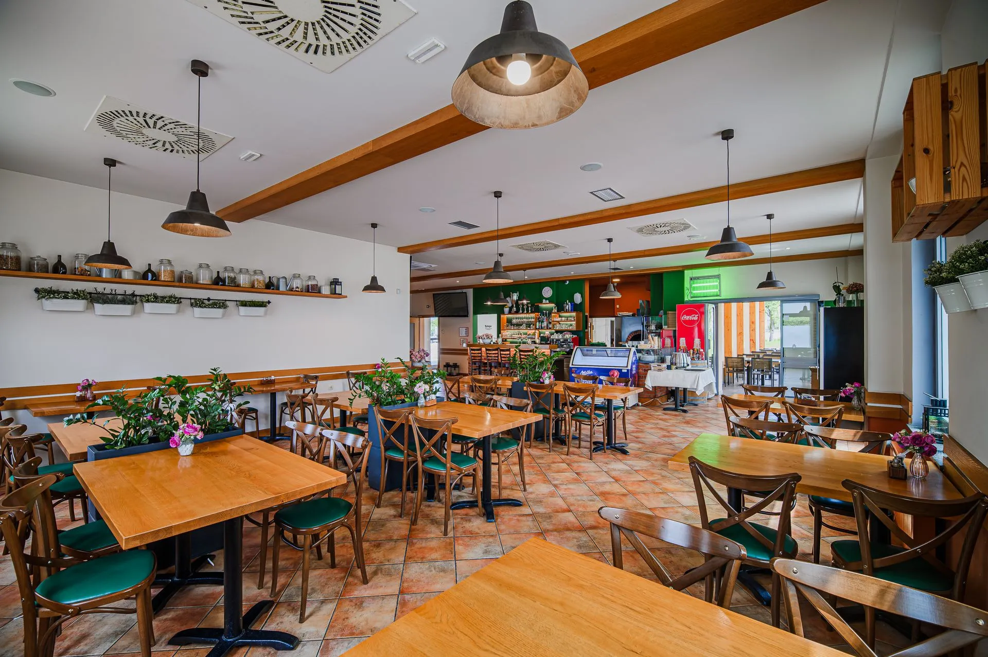 Prostori gostilne so kot nalašč za razvajanje v dvoje, druženje s prijatelji, sestankovanja in poslovna kosila, kjer vam bomo ponudili pestro izbiro hrane in velik izbor lokalno pridelanih Šenternejskih vin.